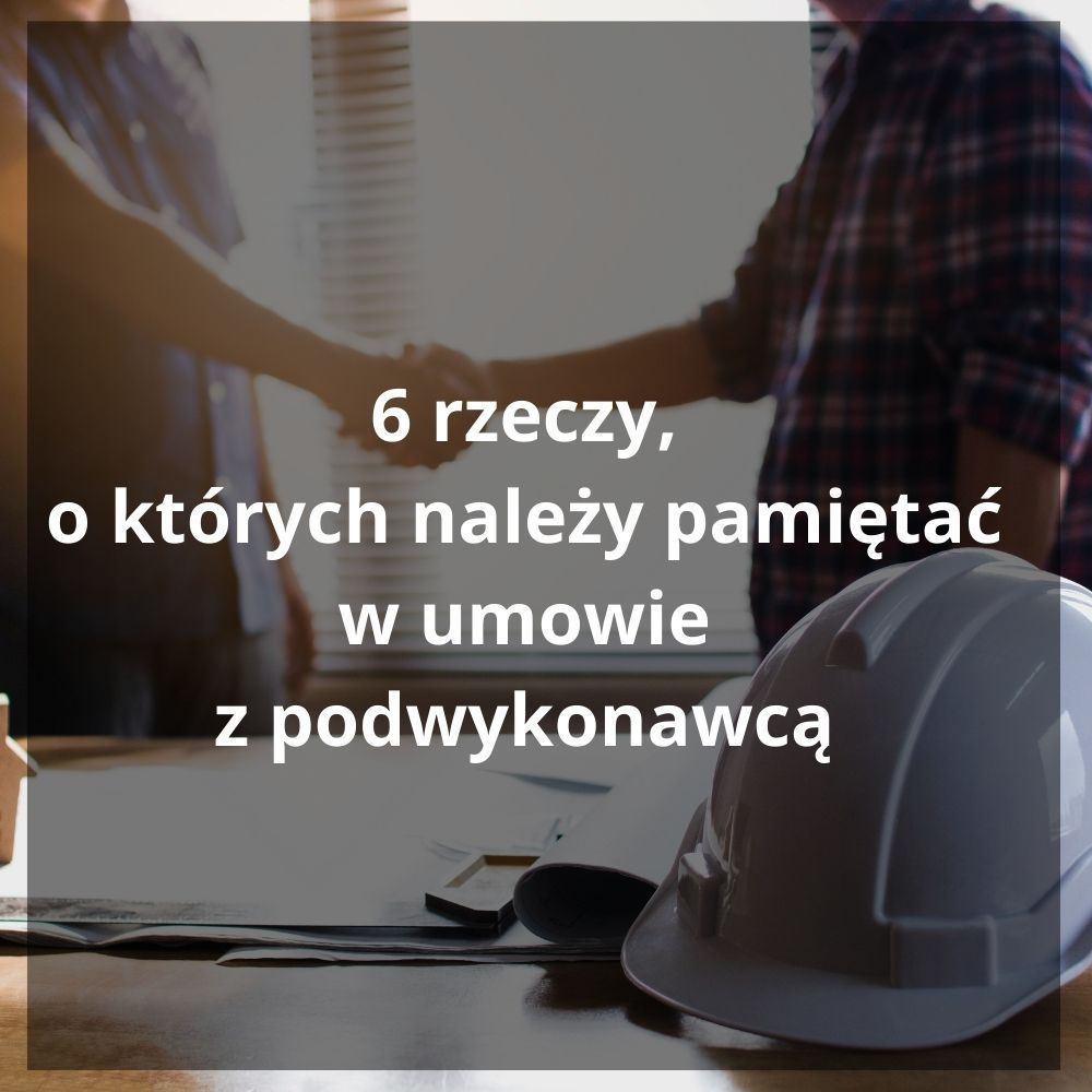 Współpraca z podwykonawcami w wielu branżach, zwłaszcza w budownictwie, IT czy usługach stanowi nieodłączny element prowadzenia działalności gospodarczej, a prawidłowe sformułowanie umów z podwykonawcami gwarantować będzie bezpieczeństwo dla przebiegu inwestycji i pozwoli skupić się na płaszczyźnie biznesowej. W tym artykule omówię 6 najistotniejszych aspektów, na które trzeba zwrócić uwagę zawierając umowy z podwykonawcą, zwłaszcza w inwestycjach budowlanych.